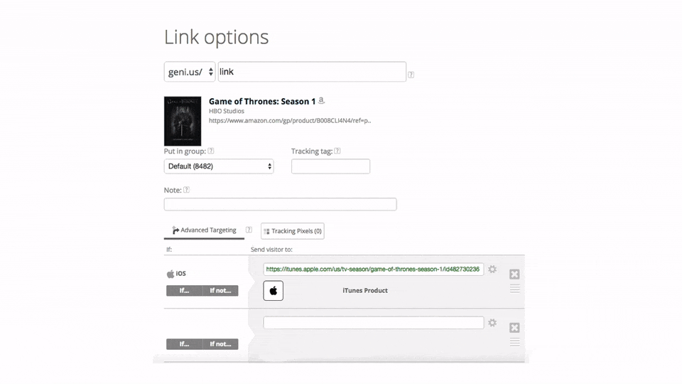 Edit your links to add advanced targets, pixels and change the default destination in real time, even after they're live, to avoid those headaches.